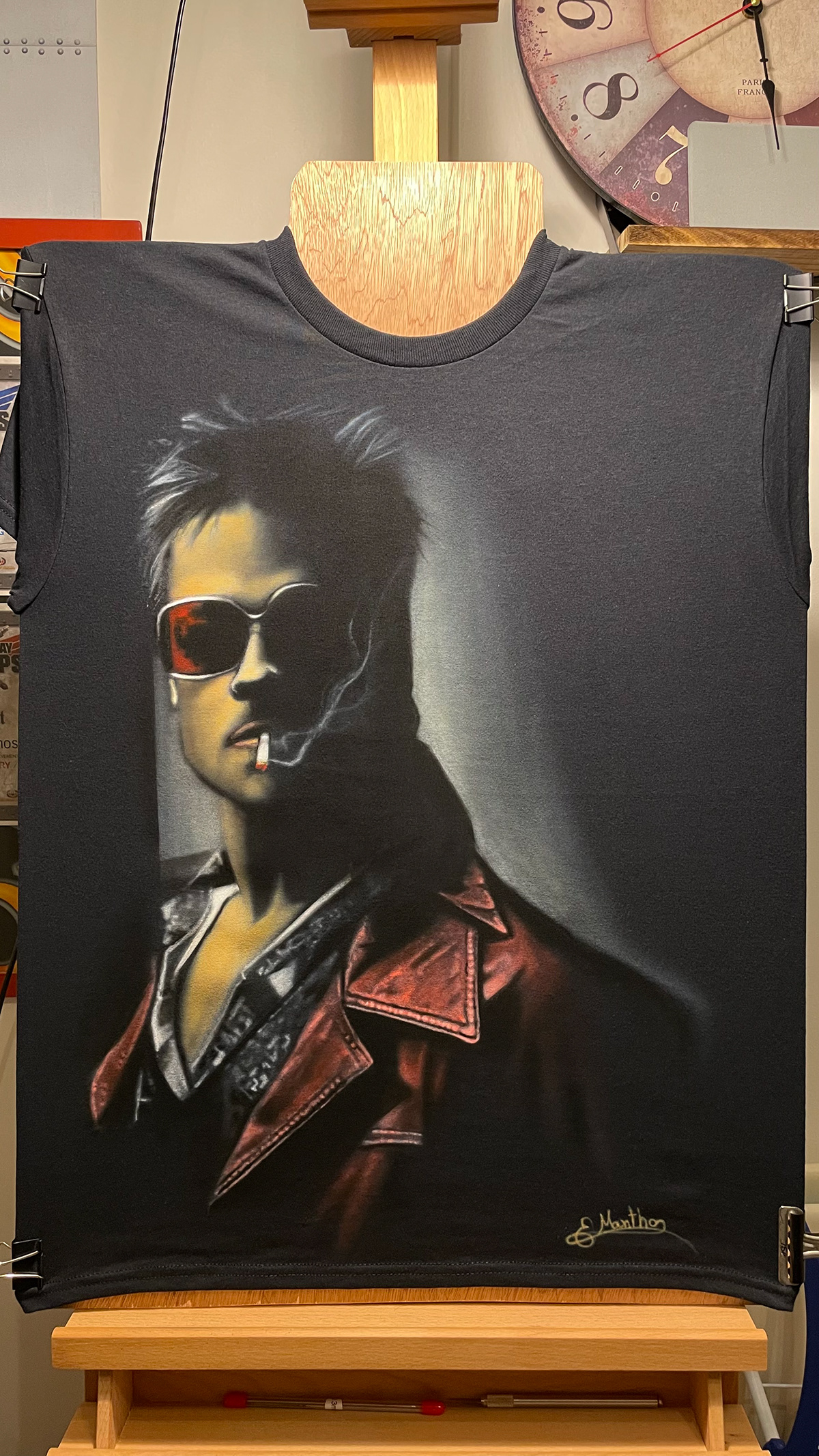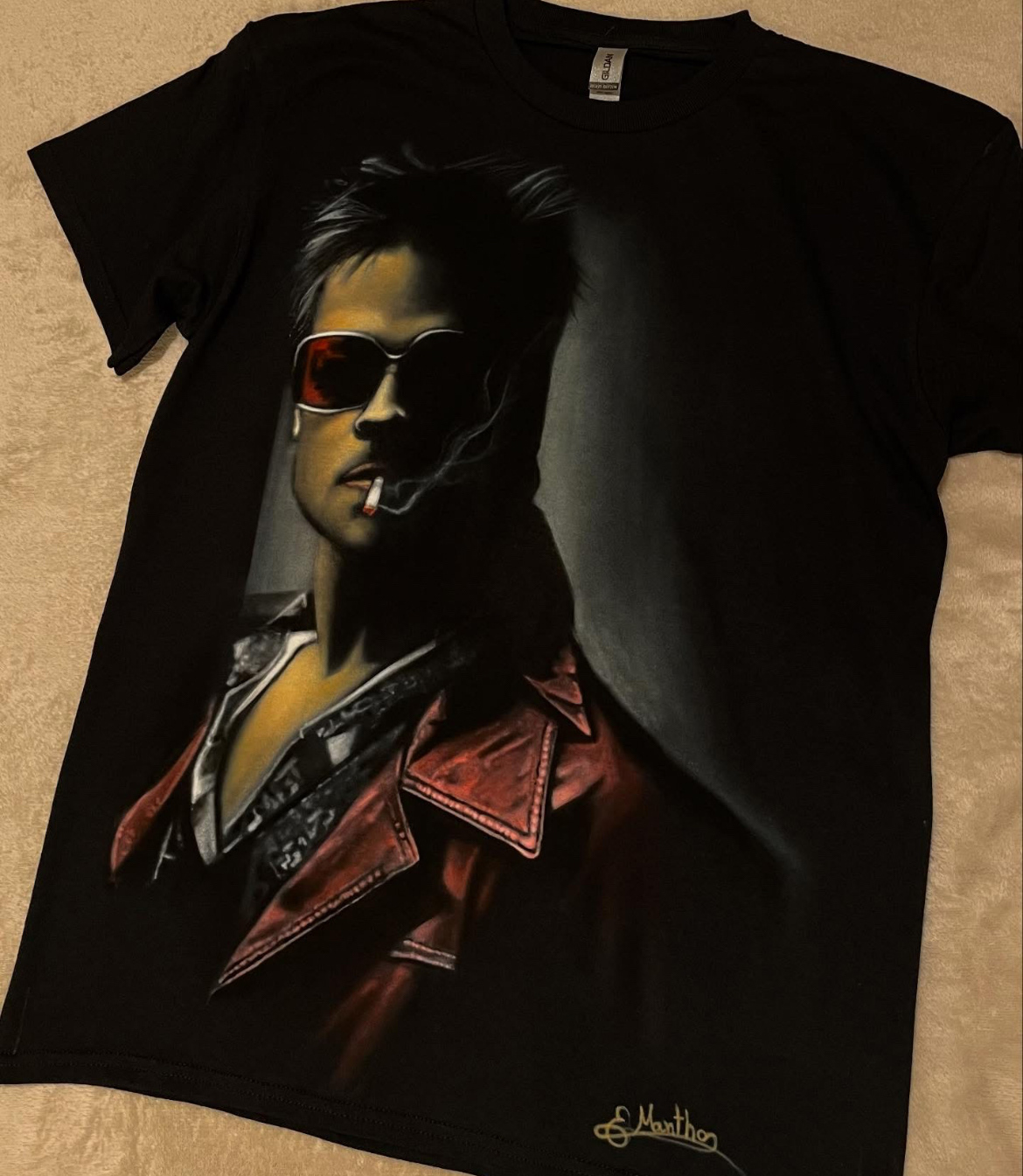 Channel the underground icon of chaos with this airbrushed tribute to Fight Club’s Tyler Durden. Rendered in moody highlights and deep shadows, this design captures the smirk, the smoke, and the defiance. A must-have for fans who live by their own rules — and don’t mind breaking a few.