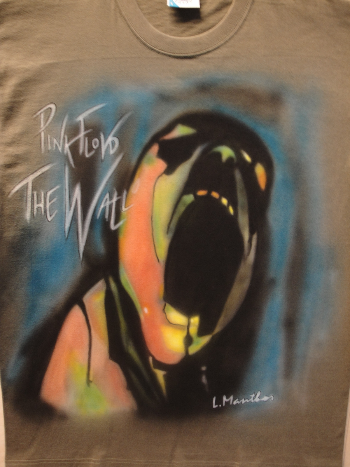 This powerful design features a hand-airbrushed tribute to Pink Floyd’s The Wall, capturing the raw emotion of the iconic screaming face. With bold colors, dramatic shading, and striking detail, the artwork brings rock history to life, making this shirt a must-have for music fans and lovers of custom art.