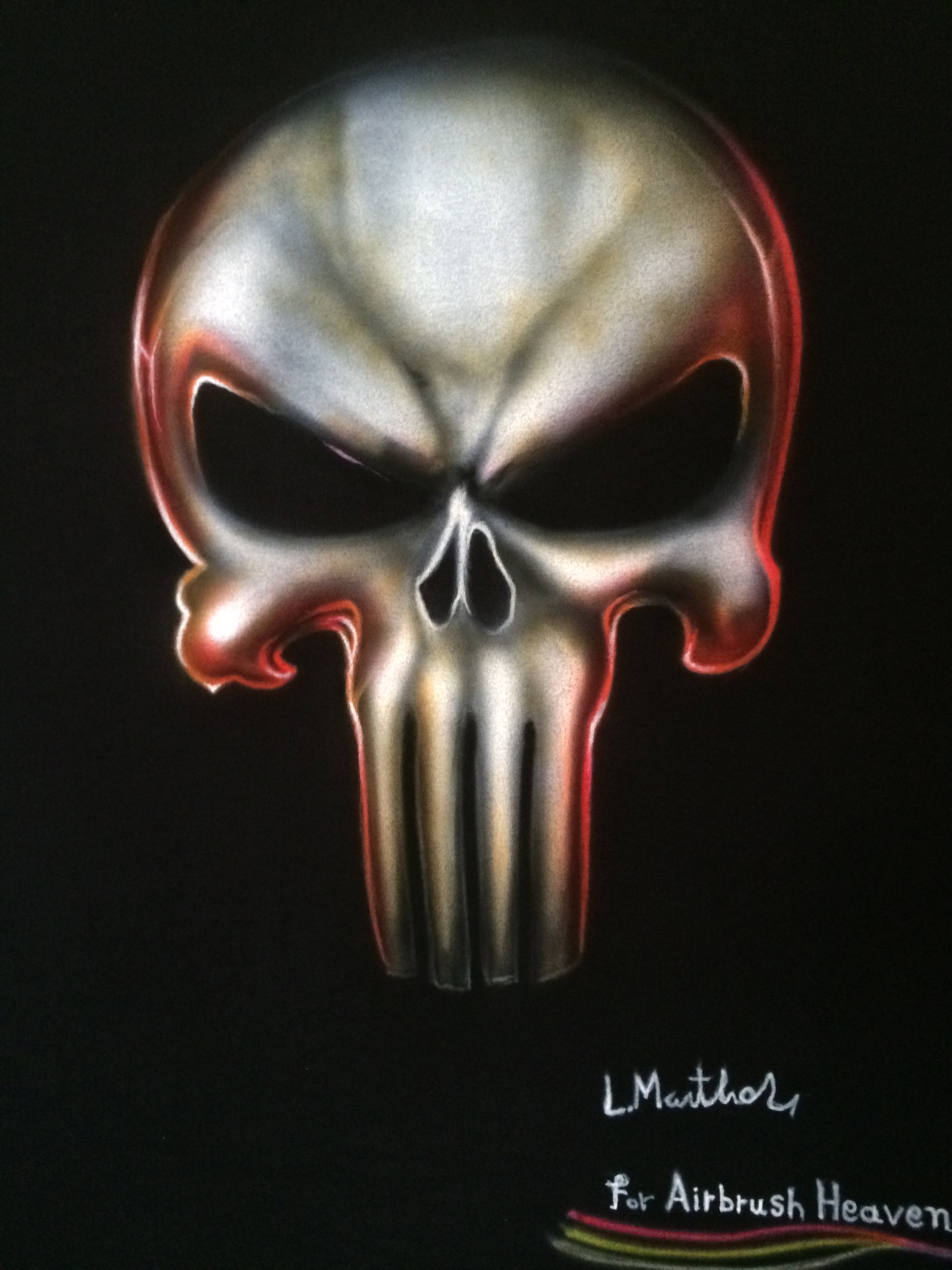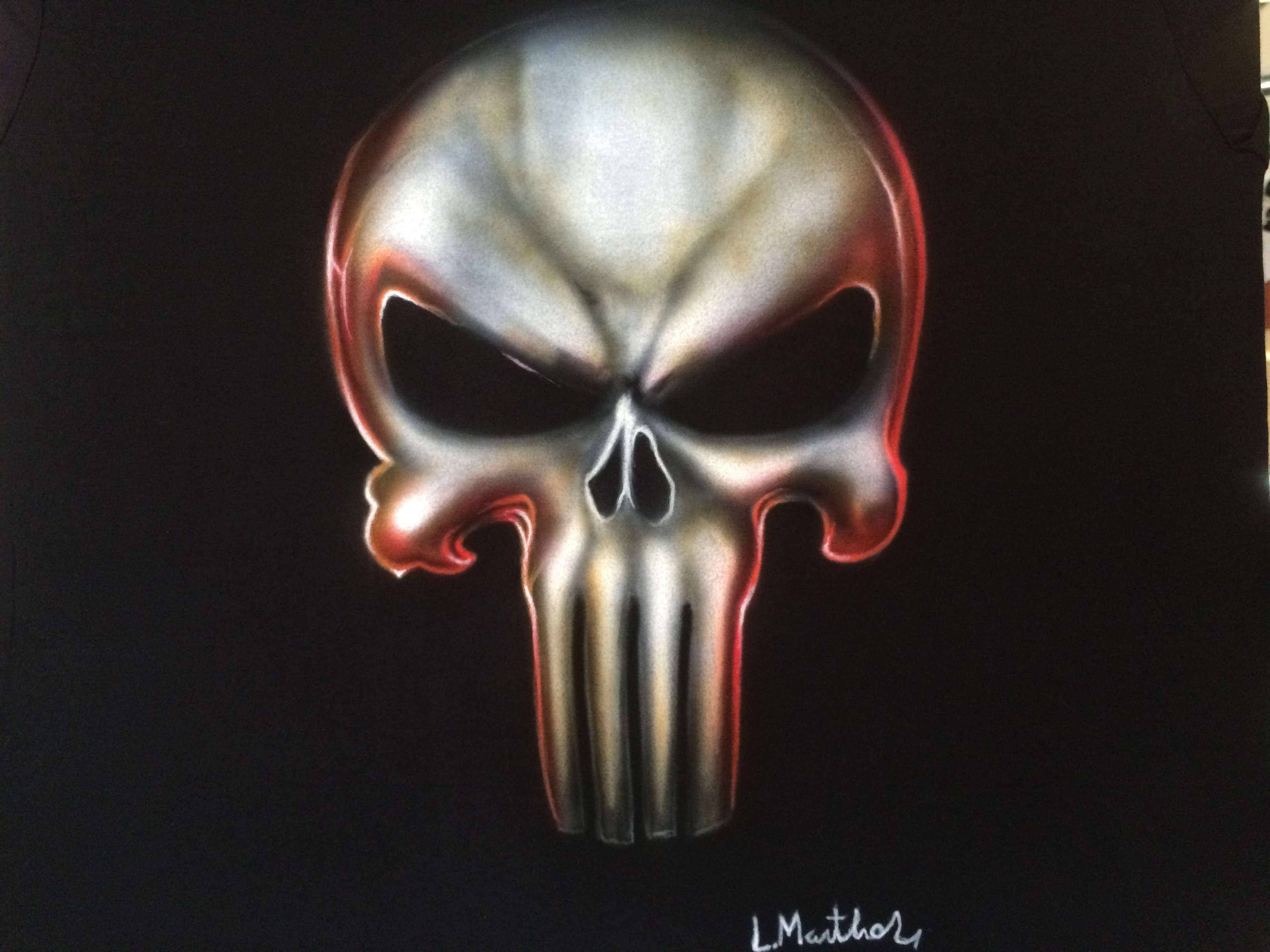 Bold, ruthless, and unmistakable — this airbrushed Punisher Skull design delivers pure attitude with metallic shading and striking contrast. The menacing glare and iconic symbol make this shirt a powerful statement piece for fans of antiheroes, dark style, and custom art that refuses to play nice.